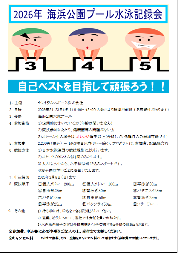 2/23(祝月)水泳記録会