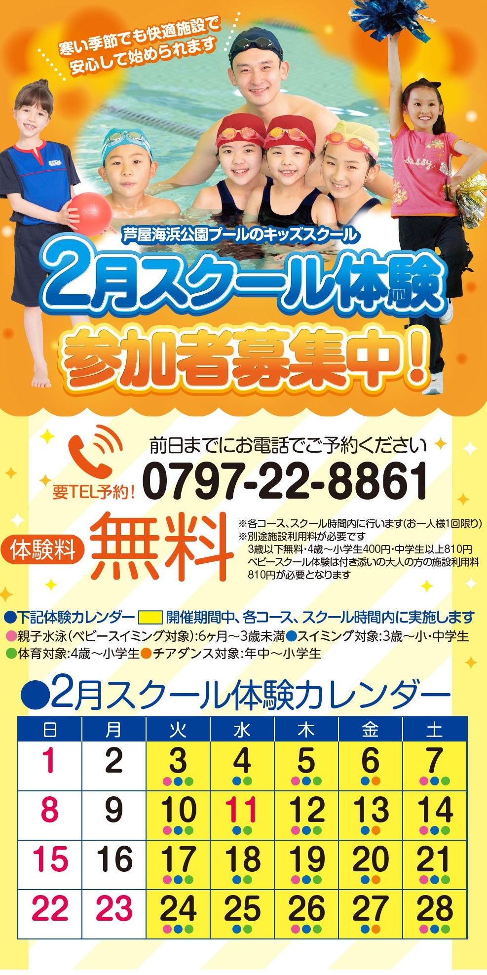 HOME > お知らせ一覧 > お知らせ > 【2月】スイミング・ベビー・体育・ダンス スクールIN体験