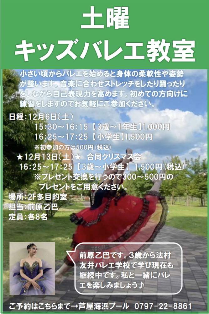 【12月】キッズバレエ教室のお知らせ